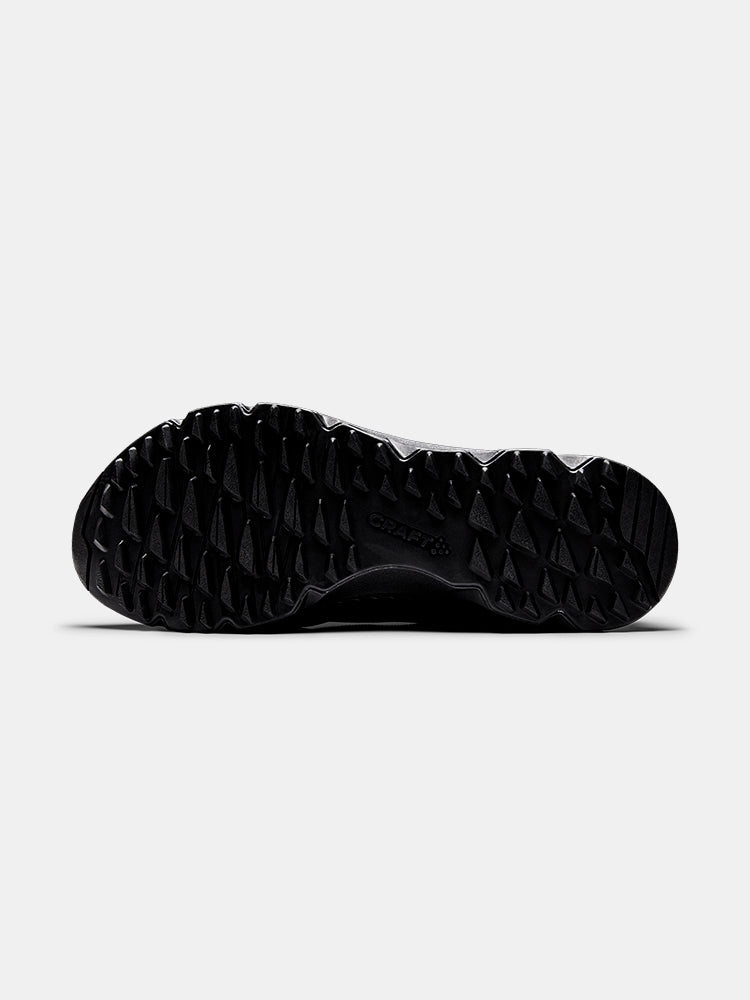 - Le motif triangulaire sur la semelle extérieure offre traction et flexibilité tandis que le coussin de talon permet le découplage pour une répartition du poids tout au long de la foulée