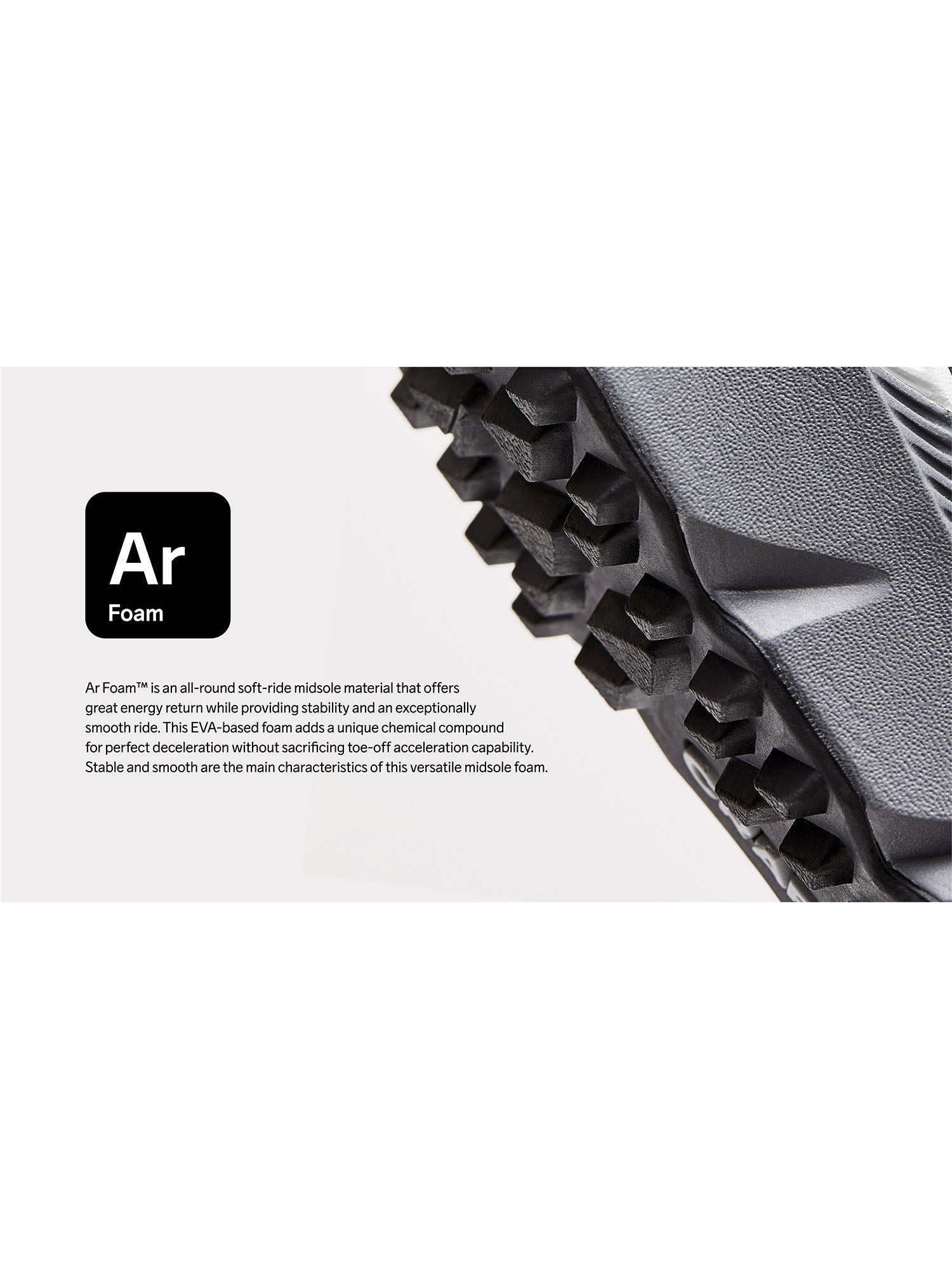 - Mousse CMEVA hautement coussinée, semelle intermédiaire avec extension de talon sculptée pour un atterrissage en douceur lors de la frappe du talon, combinée à des rainures enfoncées dans les parois latérales pour plus de flexibilité et un poids réduit