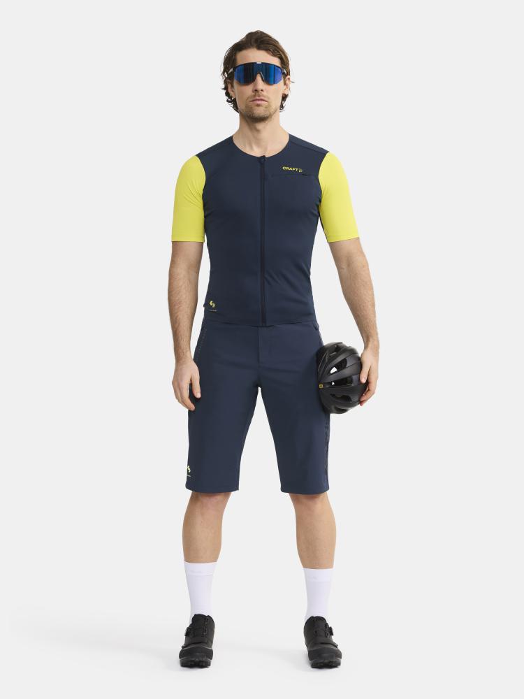 The jersey is made of lightweight, elastic and durable fabrics that provide efficient moisture transport during intense rides and features mesh panels at armpits and inside back pockets for extra ventilation. In addition, the jersey comes with plenty of pockets as well as silicone print on the shoulders for a secure grip when carrying a backpack or hydration system during long rides. Tight fit.