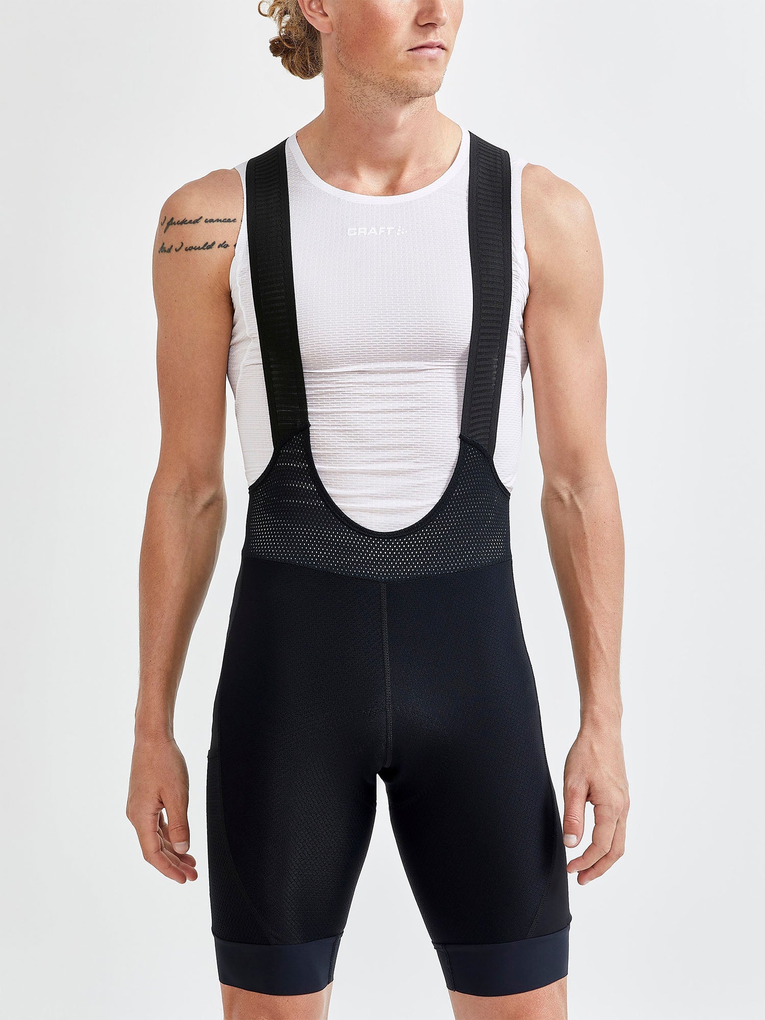 - Elastic leg endings with silicone print that keep the bib shorts in place