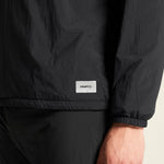 This hooded jacket is crafted from a lightweight, woven polyester fabric and features a thin PrimaLoft insulation, keeping you warm in cold and windy conditions. In addition, a soft jersey lining in the entire garment provides excellent function and enhanced warmth. A short front zipper allows for easy on and off, while two zip side pockets provide secure storage of keys, energy bars, and other essentials. Its relaxed fit and casual design make this cold-weather training jacket a versatile choice, perfect for both intense workouts and everyday wear.