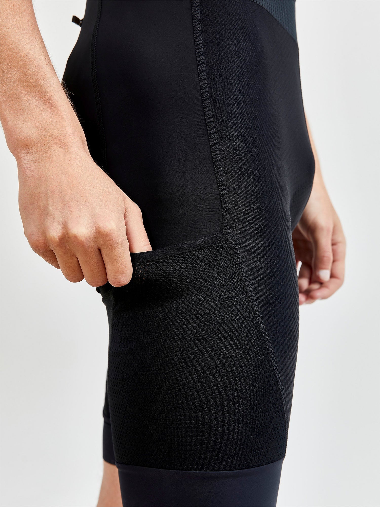 - Elastic leg endings with silicone print that keep the bib shorts in place
