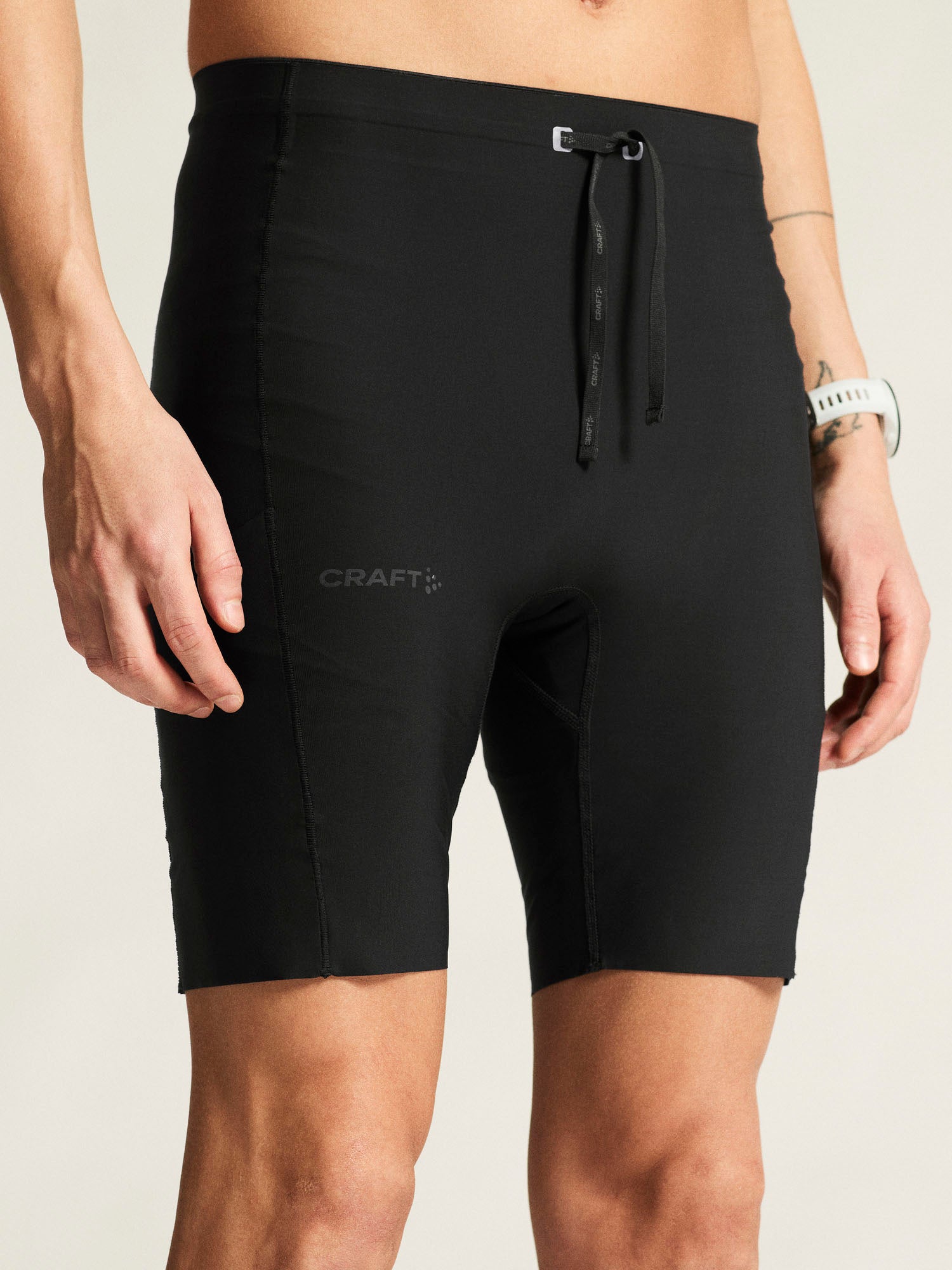 These high-performance short tights are made of recycled polyamide jersey that offers excellent ventilation and moisture transport. In addition, the tights feature elastic waistband with adjustable drawcord, two perforated back pockets, and one zip leg pocket to hold essentials for long runs.