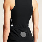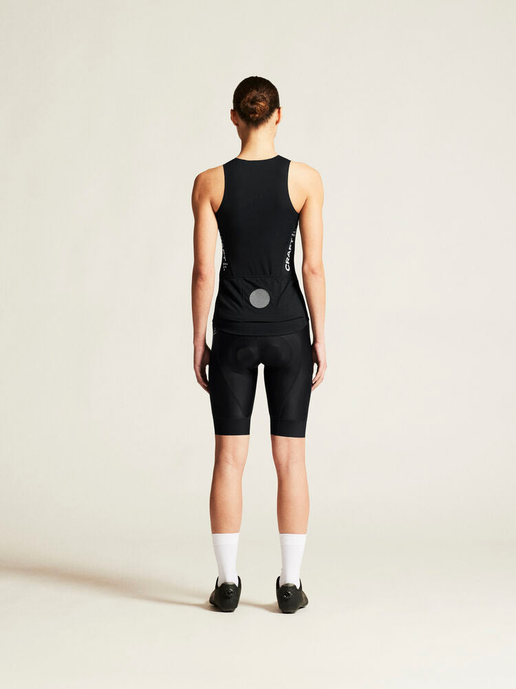 This advanced cycling singlet is made of a soft and stretchy rib fabric that provides excellent moisture transport during intense rides. The fabric is made from recycled polyester and its rib structure creates air channels for efficient ventilation as well as a soft touch for optimal comfort. In addition, mesh fabric at the sides provides enhanced ventilation while silicone print at back bottom hem keeps the singlet in place. Three back pockets for efficient storage. Tight fit.